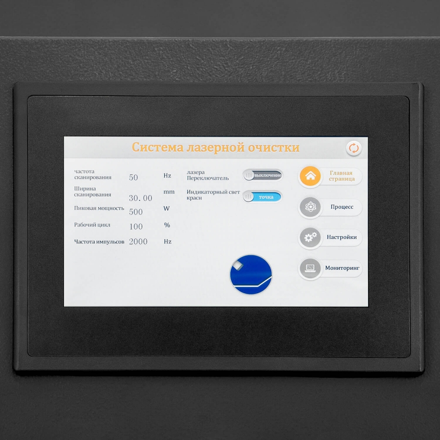 - Специальный режим очистки позволяет удалять с металла ржавчину, оксидную пленку и следы побежалости со сварных швов. Аппарат можно использовать для удаления краски и защитных покрытий. Также оборудование может подготовить поверхность металла к проведению сварочных работ.