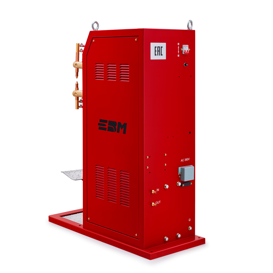 Машина контактной сварки ЕВМ МТ-35 - предназначена для контактной точечной сварки листов, прутков, проволоки из углеродистой и низколегированной, нержавеющей стали. Машина колонного типа с механическим приводом, радиальным ходом верхней консоли и микроконтроллерным управлением. Максимальная толщина свариваемых листов 3+3 мм, прутков 6+6 мм.