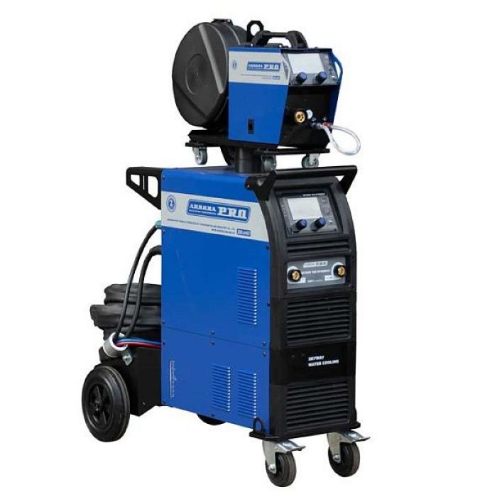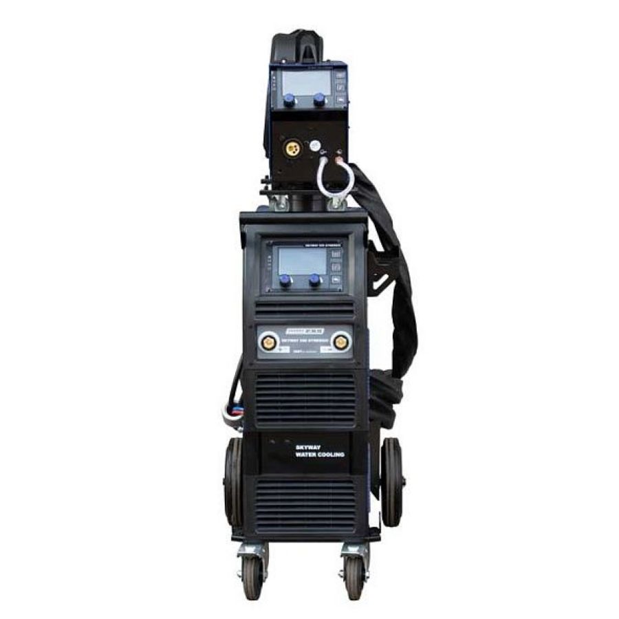 SKYWAY 550 – самый мощный синергетический полуавтомат в линейке AuroraPRO с честным значением сварочного тока в 550А. Инвертор предназначен для сварки стальной и нержавеющей проволоками в среде инертного/активного защитного газа MIG-MAG, для ручной дуговой сварки штучным электродом MMA, а также аргонодуговой сварки LIFT TIG DC. Аппарат выполнен по схеме декомпакт с 10-метровым пакетом соединительных кабелей, что позволяет значительно увеличить радиус производимых работ. В подающий механизм аппарата могут быть установлены катушки сварочной проволоки D200 и D300. Тележка с подставкой под баллон и высокая компоновка аппарата существенно облегчают работу сварщика. SKYWAY – это передовая технология инверторного блока IGBT, отличные сварочные характеристики и превосходная эргономика управления. Регулировка сварочных параметров при помощи «одной кнопки» позволяет настроить полуавтомат для выполнения широкого спектра сварочных работ на высшем уровне.