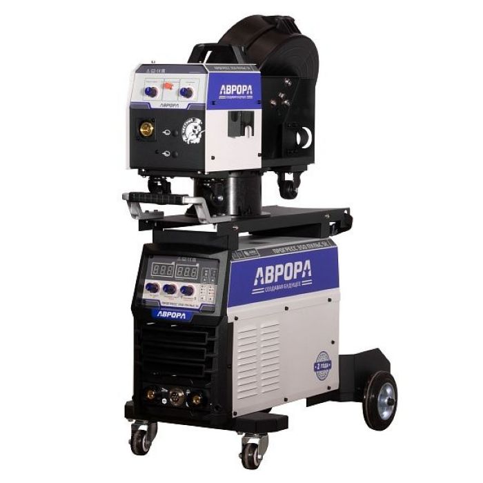 Инверторный сварочный полуавтомат АВРОРА ПРОГРЕСС 350 ПУЛЬС St - 3х фазный инвертор для полуавтоматической сварки в среде инертного/активного защитного газа MIG-MAG и для ручной дуговой сварки штучным электродом MMA. Аппарат выполнен в корпусе "декомпакт" со съёмным подающим механизмом. Рекомендованный тип катушек проволоки D200 и D300 (5-15кг). Мощный подающий механизм предназначен для работы с горелками длиной до 5 метров. Тележка с подставкой под баллон и высокая компоновка аппарата существенно облегчают работу сварщика.