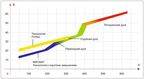 - Современные сварочные технологии: 3 технологии с переносом электрода методом короткого замыкания, 3 технологии капельного переноса электрода ПУЛЬС;