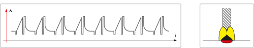Технология ПУЛЬС с высокой скоростью сварки. Высокая динамика сварки позволяет добиться более глубокого проплавления, одновременно со снижением теплового влияния на зону вокруг сварочного шва