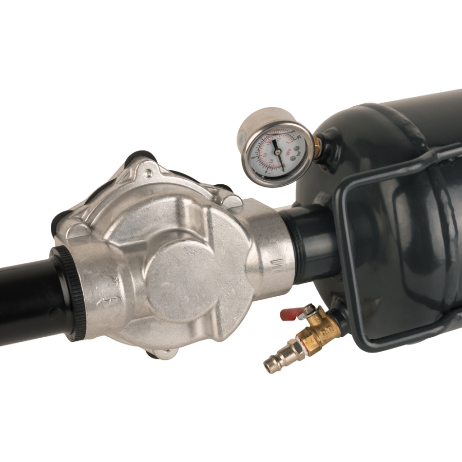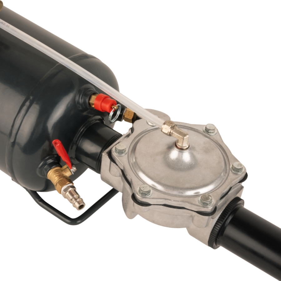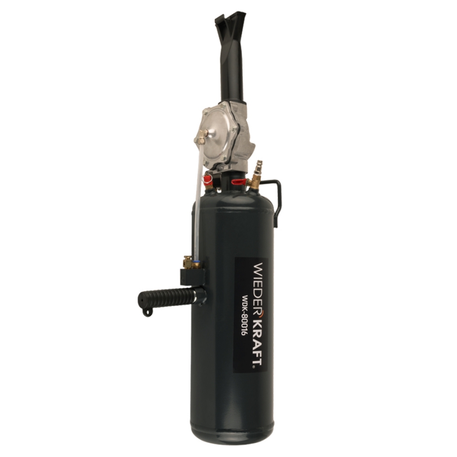 Пневматический бустер взрывной накачки колес WiederKraft WDK-80016 – профессиональное устройство для монтажа шин. Обеспечивает быстрое и надежное прилегание борта шины к колесному диску за счет стремительного выхода из устройства большого объема сжатого воздуха, благодаря чему борт шины мгновенно садится на посадочное место и достигается необходимая герметичность его прилегания. Небольшой вес устройства, а также его компактный размер обеспечивают мобильность и легкость использования. Удобная рукоятка со стартовой кнопкой и автоматический выпускной клапан обеспечивают быстрый выход большого объема сжатого воздуха. Две ручки на корпусе позволяют оператору держать бустер двумя руками. Наличие предохранительного клапана делает работу более безопасной. Сопло для выпуска воздуха имеет специальную форму и упор, обеспечивающие его эффективное расположение между ободом колеса и бортом шины. Оно изготовлено из пластика, что исключает повреждения колёсного диска и шины.