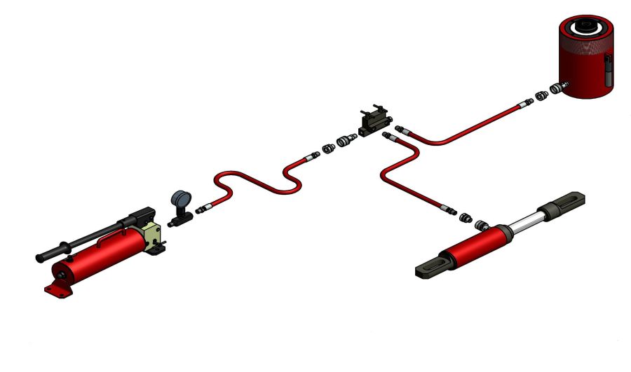 Многообразие способов применения и комплектации гидравлического инструмента практически не ограничено. Благодаря широкому ассортименту комплектующих и соединительных элементов, гидравлические механизмы могут с легкостью объединятся в более сложные системы , что значительно расширяет их функциональность и возможности. Далее приведены основные варианты сборки гидросистем: