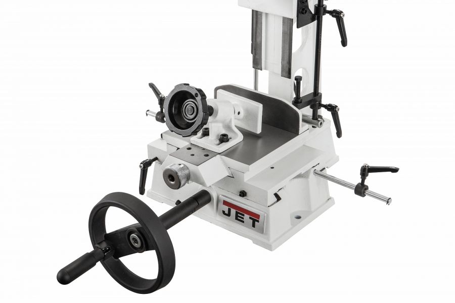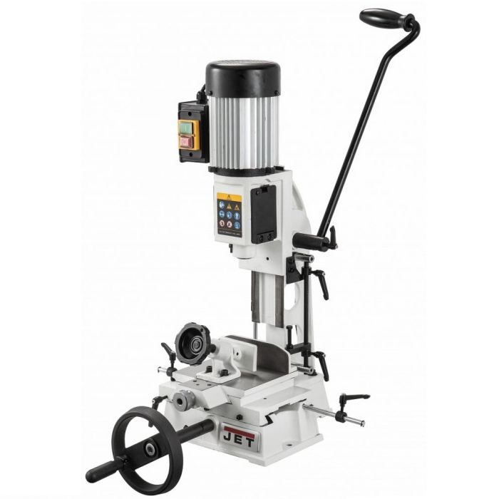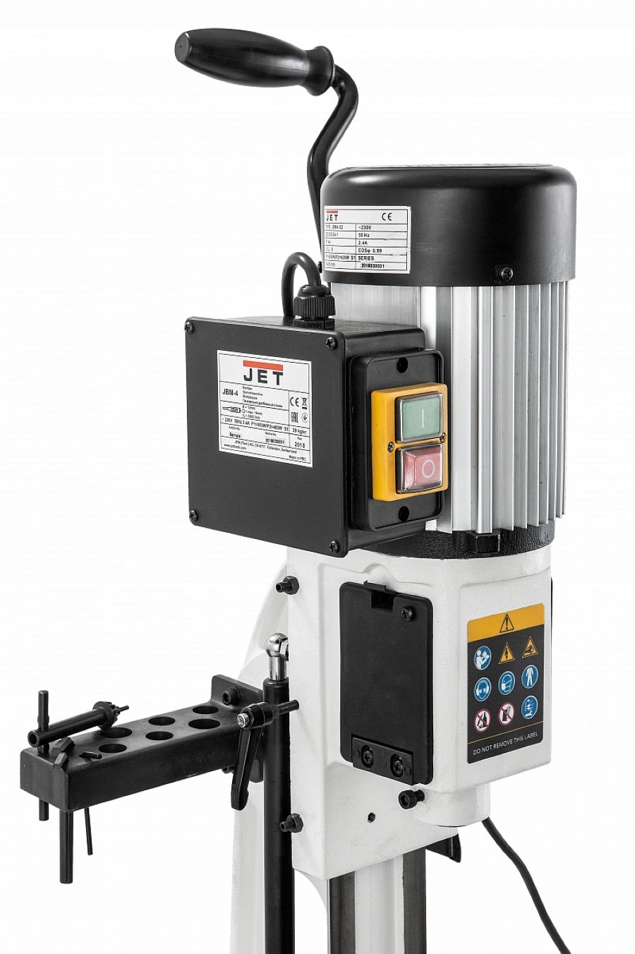JBM-4 – долбежно пазовальный станок для подготовки деталей под прямую (90°) стыковку соединением шип-паз. Прочная и жесткая конструкция изготовлена из массивных чугунных отливок. Колонна зафиксирована под прямым углом к плоскости рабочего стола, ее положение не регулируется, это упрощает настройку и повышает точность станка.