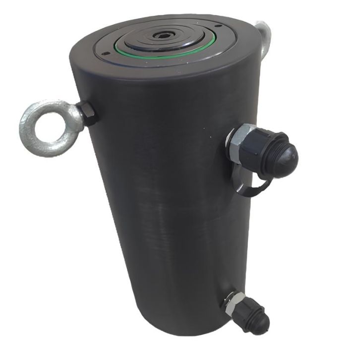 Домкрат с гидравлическим возвратом предназначен для подъема груза, для использования в качестве составной части прессового оборудования. В качестве привода используется ручной или электрический гидравлический насос двустороннего действия с рабочим давлением 700 бар.