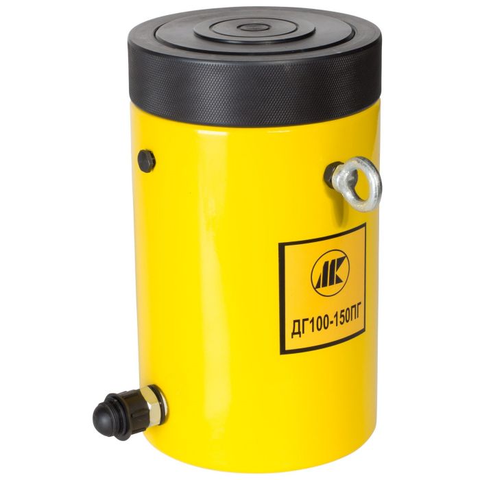 Домкрат грузовой гидравлический с фиксирующей гайкой ДГ300-300ПГ - предназначен для подъема и безопасного удержания поднятого груза в течение длительного времени. В качестве привода используется ручной, ножной или электрический гидравлический насос одностороннего действия. У домкратов с фиксирующей гайкой диаметр штока и поршня одинаковые, поэтому поршень домкрата не имеет механического ограничения на выдвижение. При достижении максимальной величины выдвижения штока, будет происходить выброс масла через пробку с отверстием, расположенную рядом с фиксирующей гайкой. Это требуется для предотвращения выхода поршня за пределы гильзы цилиндра.