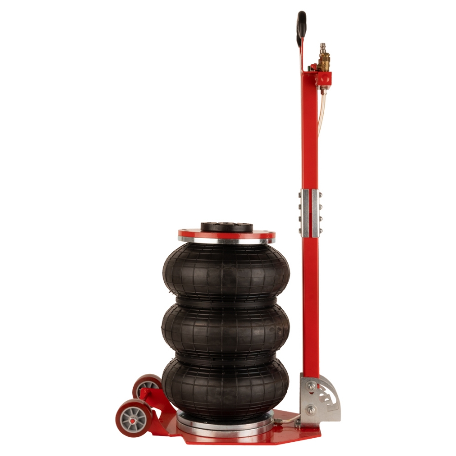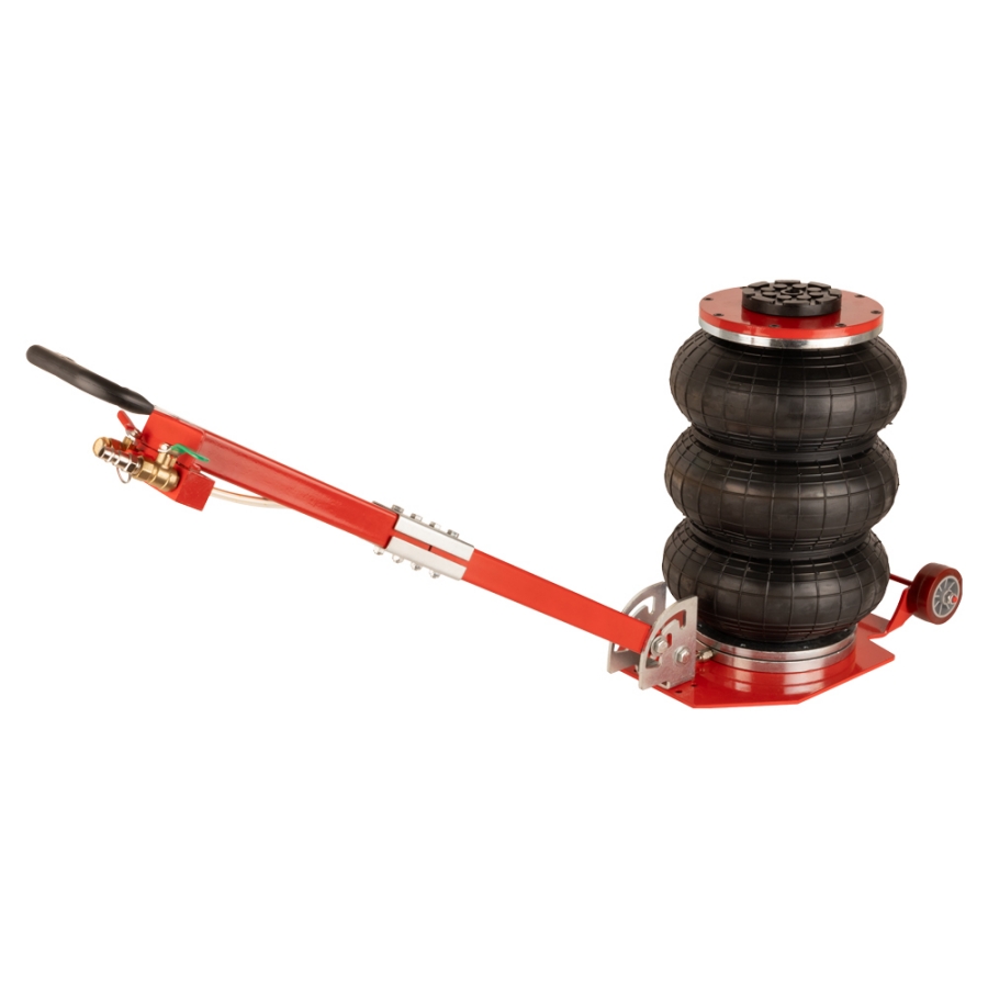 Пневматический подкатной домкрат WiederKaft WDK-81813 грузоподъемностью 3000 кг. Оснащен эргономичной рукояткой с регулировкой угла наклона и колесами для легкого перемещения в рабочем пространстве. Пневматический домкрат обеспечивает подъем легковых автомобилей, микроавтобусов и легких грузовиков без приложения физических усилий оператором. При этом, обеспечиваются плавность хода при подъеме (опускании) груза и точная регулировка высоты подъема. Высота домкрата позволяет применять его для подъёма практически всех легковых автомобилей. Домкрат не нуждается в техническом обслуживании, прост в использовании, очень устойчив благодаря внутреннему телескопическому цилиндру. Подключение к воздушной магистрали осуществляется при помощи быстросъемного фитинга. Сжатый воздух можно подавать как напрямую с компрессора (лубрикация воздуха обязательна), так и по магистрали, которая имеется в крупных автосервисах и СТО.