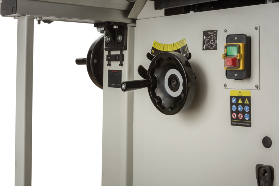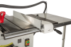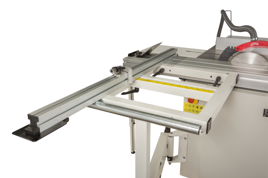 Станок оборудован подвижным столом (кареткой), ход которого составляет 1600 мм. При работе на нем деталь фиксируют при помощи углового упора, эксцентрикового прижима или продольного упора. В стандартный комплект входит и расширение подвижного стола с телескопической опорой и раздвижным поворотным упором заготовки. В разложенном состоянии его длина составляет 2200 мм, в сложенном 1200 мм.
