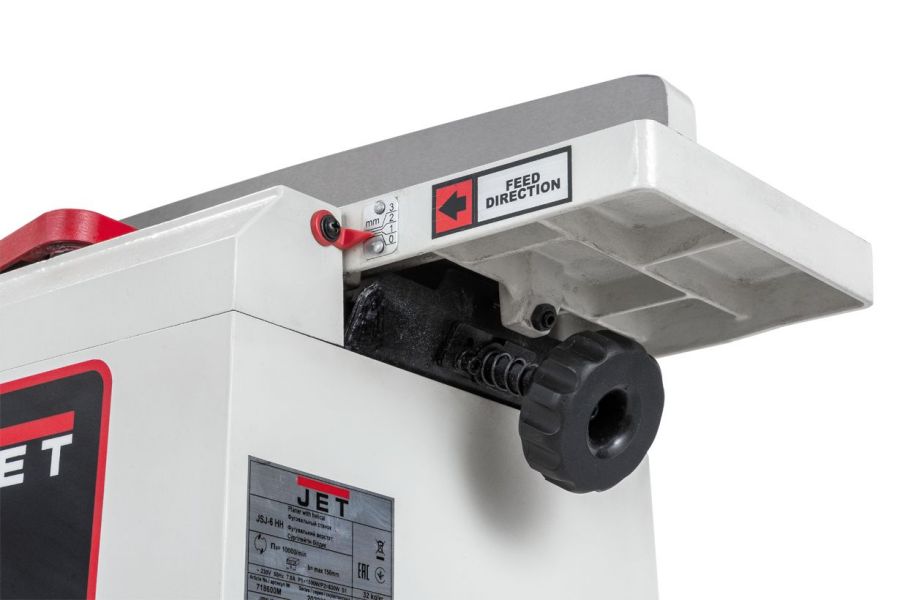 Благодаря настольной компоновке, легкому коллекторному мотору, чугунным столам и валу helical станок JSJ-6 HH удачно (не в ущерб рабочим параметрам) совмещает компактность и мобильность любительских моделей с мощностью, качеством строгания и производительностью профессиональных фуганков.