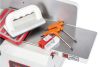 Технология helical получила широкое распространение в классе дорогого профессионального оборудования, её применение на компактном настольном фуганке уникально. Для адаптации базовой модели JSJ-6 даже пришлось изменить конструкцию — барабан расположен не стационарно, а с возможностью регулировки по высоте, ведь выступ ножей и высота приёмного стола не регулируются. Кроме того, была существенно увеличена мощность двигателя. В остальном эти две модели схожи: имеют чугунные столы и массивный чугунный упор с регулировкой наклона и встроенную систему стружкоудаления с мешком-фильтром. Последняя особенность крайне важна для эксплуатации в небольших помещениях, где нет места для компонентов полноценной системы аспирации.