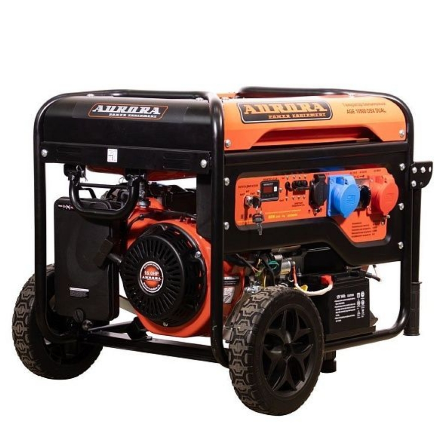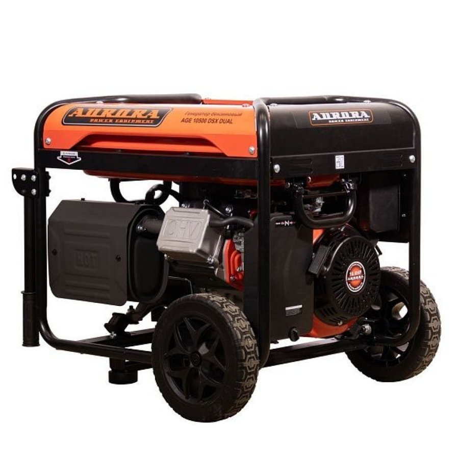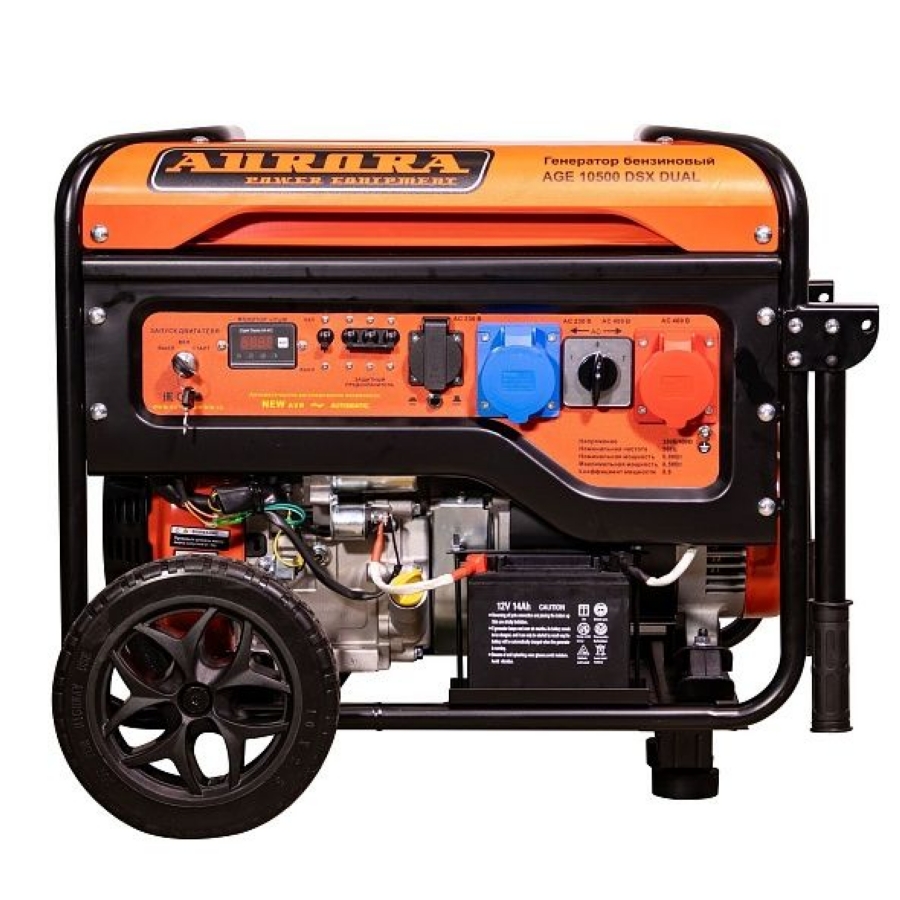 Бензогенератор Aurora AGE 10500 DSX DUAL - это автономный источник питания. Главной особенностью данного генератора является возможность подключения как однофазных, так и трехфазных потребителей. Т.е. он рассчитан на работу в двух режимах: только 230 В или только 400 В, что позволяет получить всю мощность аппарата (8.5 кВт). Отлично подходит для работы в загородных домах, в гаражах, на стройке, для обеспечения электричеством ремонтных бригад, а также решения других задач, требующих энергоснабжения там, где нет доступа к стационарному источнику.