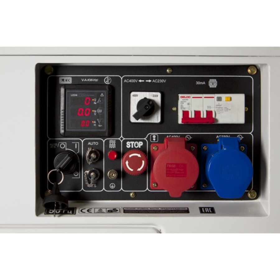 Оборудован системой изменения типа напряжения - позволяет легко переключать генерацию напряжения с 380V на 220V без потери мощности. Обычно использование 3-х фазного генератора потребителей 220V приводит к существенным повреждениям статорной обмотки (перегрузка одной из трех обмоток). Реализована возможность использования генератора в режиме с ATS (автоматического запуска при отсутствии внешнего питания), генератор адаптирован для подключения ATS.