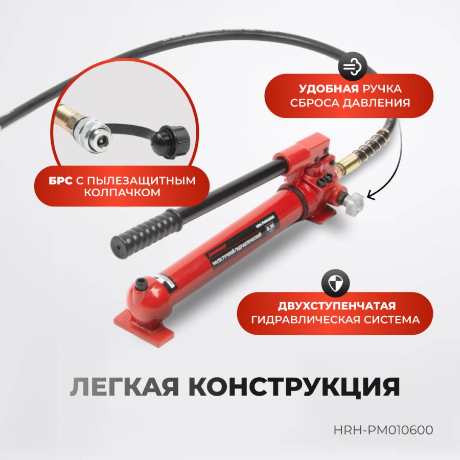 Насос ручной гидравлический Harrison HRH-PM010600 предназначены для создания давления в гидравлической системе путем ручного привода. Они широко используются в различных областях промышленности и строительства для подачи рабочей жидкости в гидравлический инструмент. Как правило, такие насосы имеют компактные размеры, что делает их удобными для переноски и использования на различных объектах. Гидравлические ручные насосы не требуют подключения к электросети, надежны и просты в обслуживании и эксплуатации.