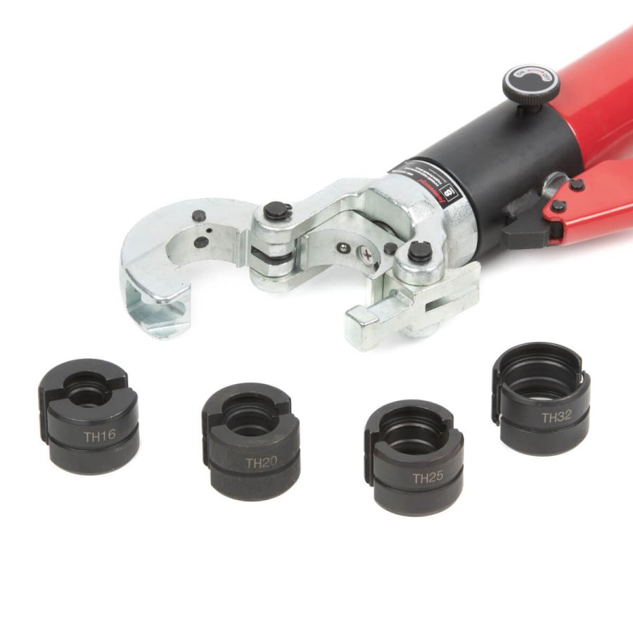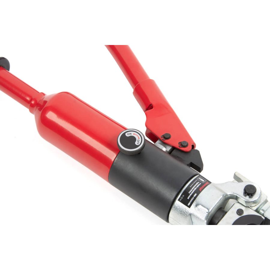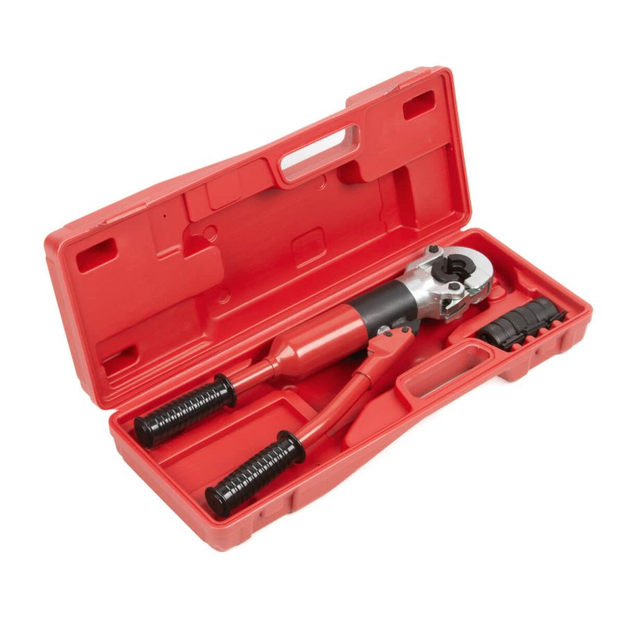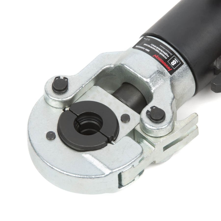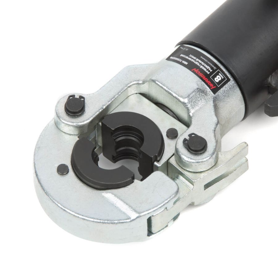 Пресс гидравлический Harrison HRH-TC0103208 предназначен для обжимки различных гидравлических трубных соединений и фитингов. Устройство имеет особую конструкцию: на одной из ручек установлен гидроцилиндр, шток которого механически связан с обжимной головкой. Вторая ручка соединена с поршнем насосного механизма. При сжимании рукояток поршень передает усилие на гидроцилиндр, создавая в нем давление, которое передается на обжимную головку с помощью выходного штока.