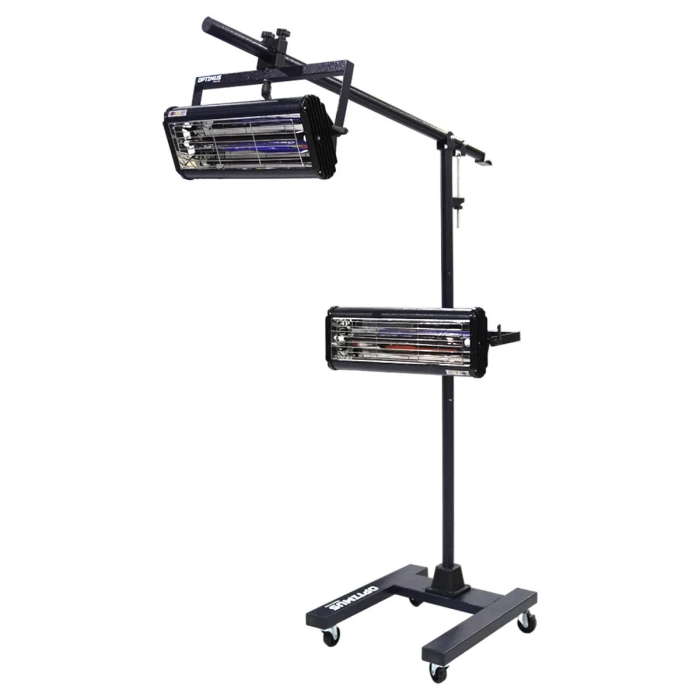 Профессиональная двухкассетная инфракрасная сушка OPT-F22 на мобильной стойке – это высокоэффективное решение для быстрого и равномерного прогрева средних по площади участков кузова, включая крыши, двери, капоты и боковины, при ремонте лакокрасочных покрытий (ЛКП). Работая от стандартной сети 220В, система обеспечивает мощный нагрев до 100°С.