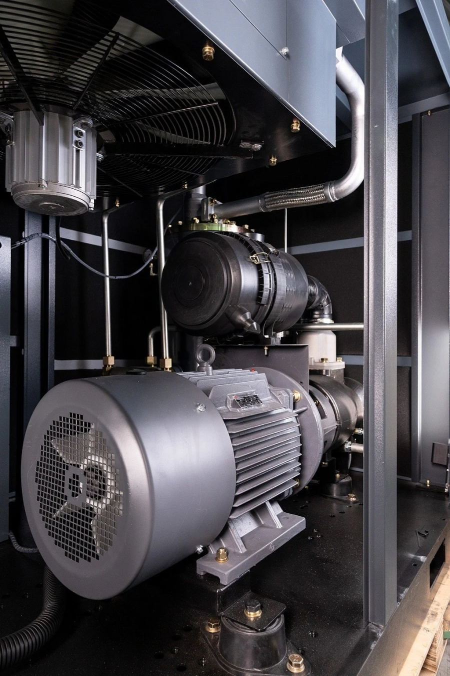 Частотный преобразователь Folinn обеспечивает плавный запуск и остановку компрессора, снижает пусковые токи двигателя и защищает устройство от перегрузок, короткого замыкания или потери фазы.
