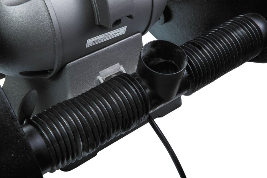 Не забывайте правка круга с помощью шарошки очень пыльная процедура, подключайте вытяжную установку к станку и используйте защитные очки при работе, кстати, дополнительно, круги к станку и вытяжную установку можете дополнительно приобрести у нас. Так же помните, что искры от точила имеют высокую температуру и требуют применения негорючих шлангов и специальных вытяжных установок.