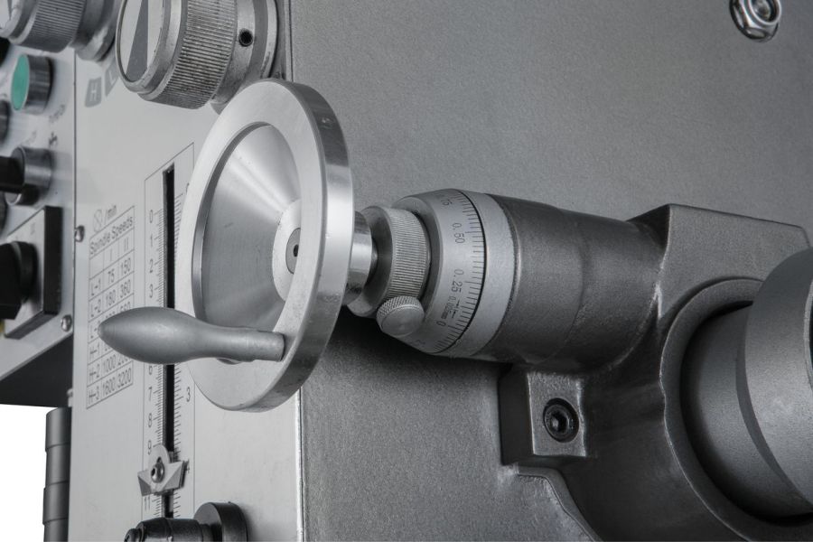 Модель оборудована мощным асинхронным электродвигателем - 1,1/1,5 кВт, обеспечивающий частоту вращения шпинделя в 2-х диапазонах 75-1600 об/мин и 150-3200 об/мин. Станок оборудован коробкой скоростей для выбора необходимой частоты вращения, по 6 скоростей в каждом из двух диапазонов. Функция включения реверса шпинделя позволяет осуществлять нарезание резьбы.