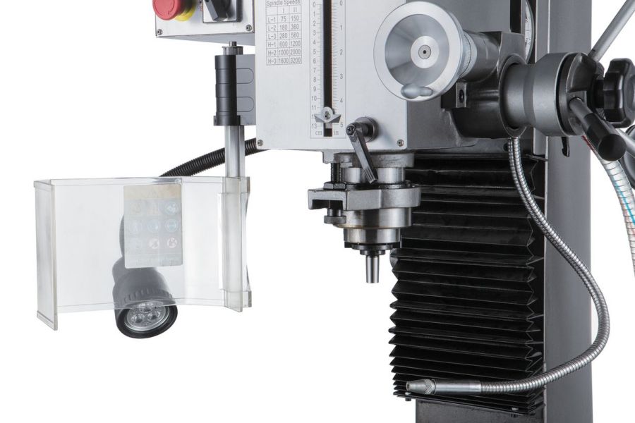 - Редукторное переключение частоты вращения шпинделя с широким диапазоном выбора скоростей