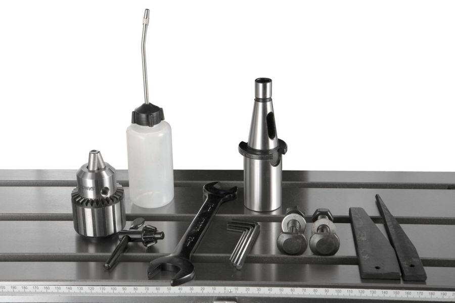 Модель JMD-45L оснащена рабочим столом размером 800 x 240мм, который перемещается по направляющим типа ласточкин хвост и имеет возможность перемещения по осям X, Y на величину 560мм и 190 мм соответственно. На столе имеется три Т-образных паза шириной 14 мм для закрепления деталей прихватами или установки тисков и других приспособлений. Общий вес станка составляет 350кг/