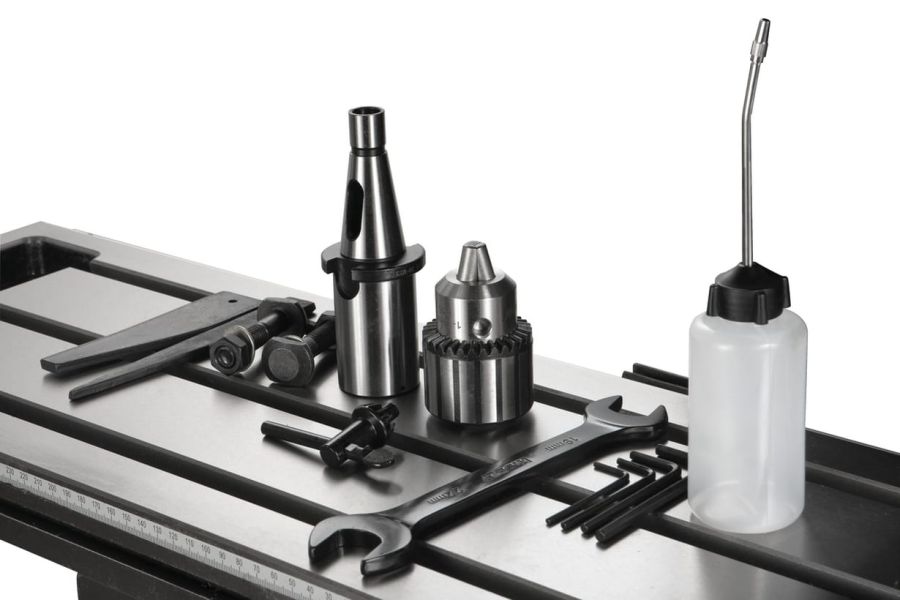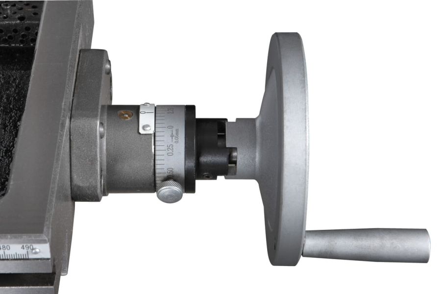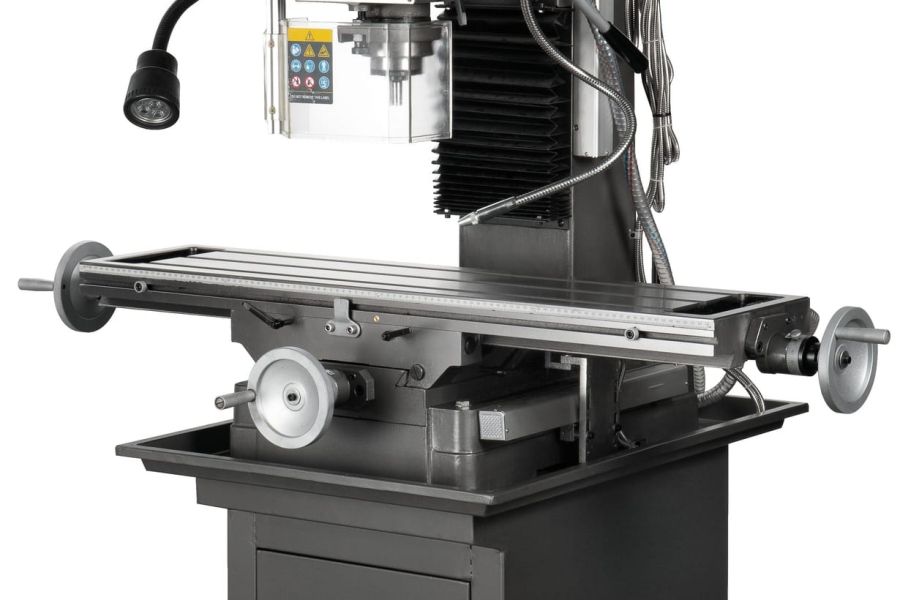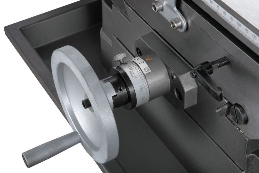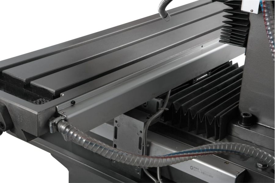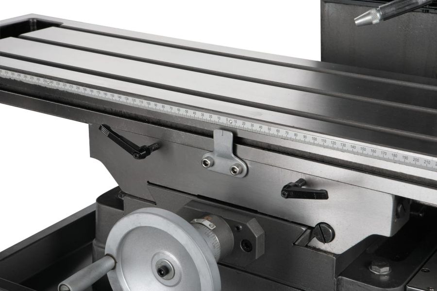 Модель JMD-45LPFD оснащена рабочим столом размером 1000 x 240мм, который перемещается по направляющим типа ласточкин хвост и имеет возможность перемещения по осям X, Y на величину 760мм и 190 мм соответственно. На столе имеется три Т-образных паза шириной 14 мм для закрепления деталей прихватами или установки тисков и других приспособлений.