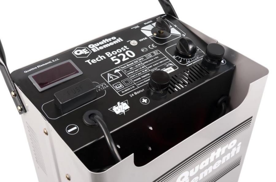 Пуско-зарядное QUATTRO ELEMENTI Tech Boost 520 - представляет собой переносные однофазные трансформаторные устройства, предназначенные для заряда перезаряжаемых свинцово-кислотных и гелевых аккумуляторных батарей постоянным током и помощи при пуске бензиновых и дизельных двигателей внутреннего сгорания на 12/24 В. Компактные и надежные в эксплуатации, универсальные аппараты Quattro Elementi подойдут для любого частного пользователя. Пуско-зарядные устройства Quattro Elementi отвечают современным техническим стандартам и стандартам качества, обеспечивая долгий и безопасный эксплуатационный период.