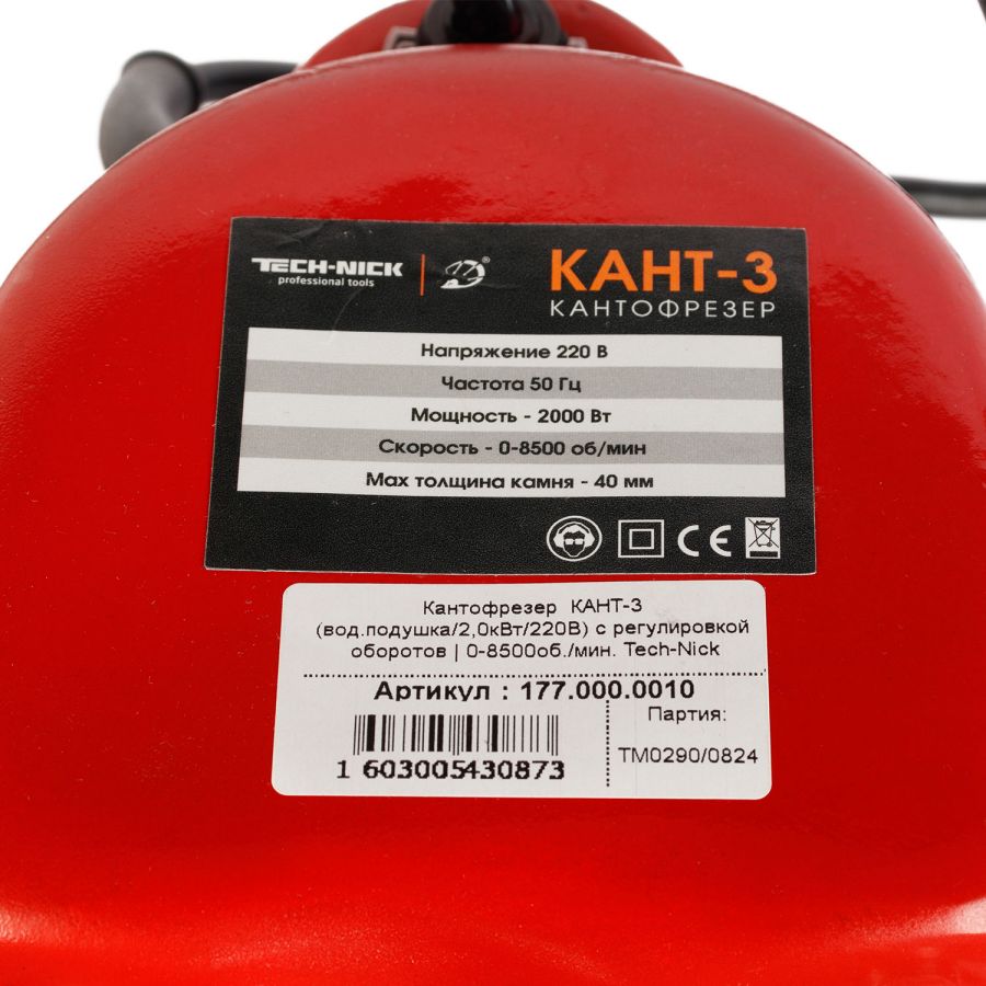 Кантофрезер КАНТ-3на водяной подушке (2000 Вт) - мощный кантофрезер на водяной подушке. На кантофрезере применена удобная система подъема-опускания вала с помощью воротка. Комплектуется гибким подводом воды и фартуком для предотвращения брызг во время работы. Крепление инструмента на валу: внутренняя резьба М10 / М8.