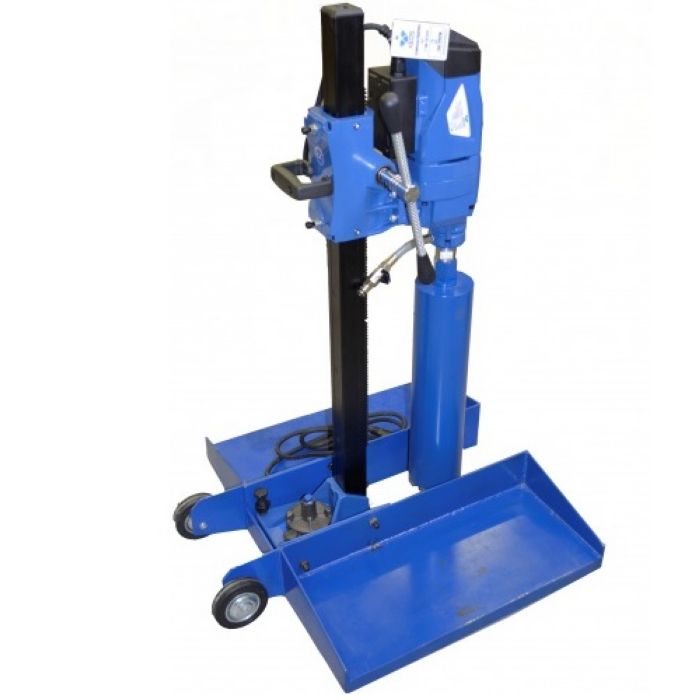Керноотборник KEOS KB-200 (250) состоит из мотора KS-250 мощностью 2,8 кВт, прямого штатива и опорной плиты. Используется для отбора кернов в асфальте (редко: в бетоне и железобетоне) специализированными алмазными коронками. Керноотборник работает от сети 200В, что позволяет работать даже на закрытых площадках. Максимальный диаметр сверления 210 мм. Двойная посадка шпинделя 1 1/4 и 1/2 дюйма позволяет работать разными коронками, без использования лишних переходников. К станине крепится опорная плита, обеспечивающая дополнительную устойчивость. Операторы становятся на платформы, удерживая своим весом станину с мотором в неподвижном положении даже при высокой нагрузке. Вес оборудования 45 кг.