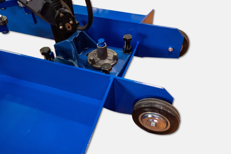К станине крепится опорная плита для дополнительной устойчивости. Операторы становятся на платформы, удерживая своим весом станину с мотором в неподвижном положении даже при высокой нагрузке