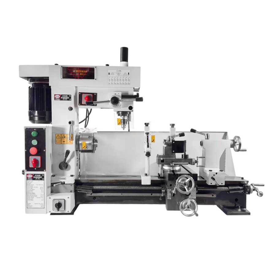 Комбинированный токарный станок PROMA SKF-800 - комбинированный станок для токарной и фрезерной обработки металла, пластмасс используют на небольших производствах и в частных мастерских. Станки PROMA зарекомендовали себя как очень надежные с большим сроком эксплуатации и высоким качеством узлов оборудования. SKF-800 имеет: устойчивою без вибрации станину, выполненную из чугуна, высокопроизводительный электродвигатель с потребляемым напряжением 380 Вольт, экран защиты зажимного патрона повышает уровень безопасности. Шпиндель с подшипниками и вращением с реверсом для нарезания резьбы. Возможность производить обточку конусов благодаря смещению с регулировкой задней бабки, а также помимо токарных работ возможность производить фрезерные и сверлильные операции, что делает данный станок многофункциональным.