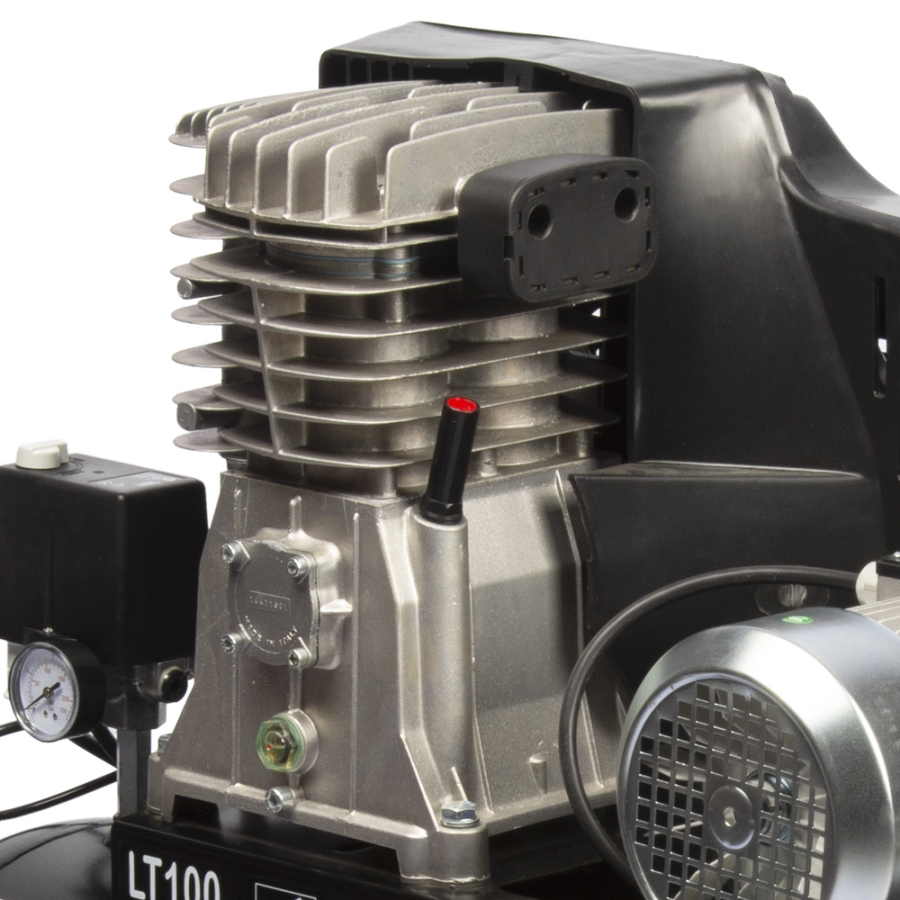 Компрессорная головка из легкого алюминиевого сплава с увеличенным оребрением для повышения теплоотдачи и эффективного охлаждения;