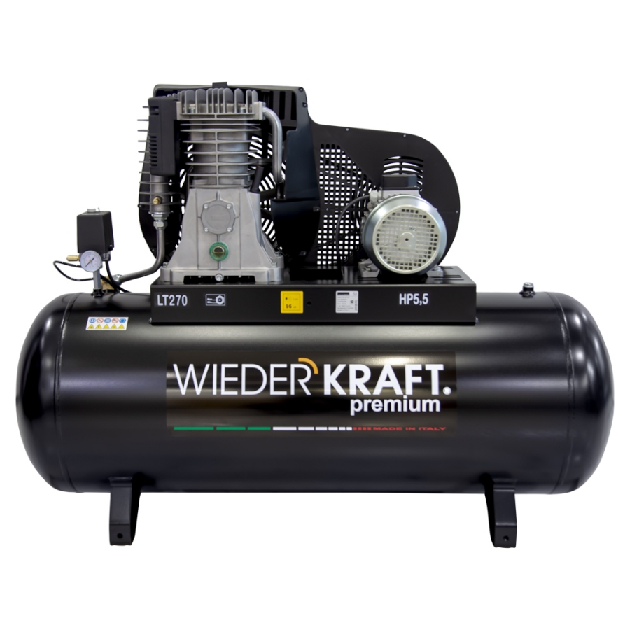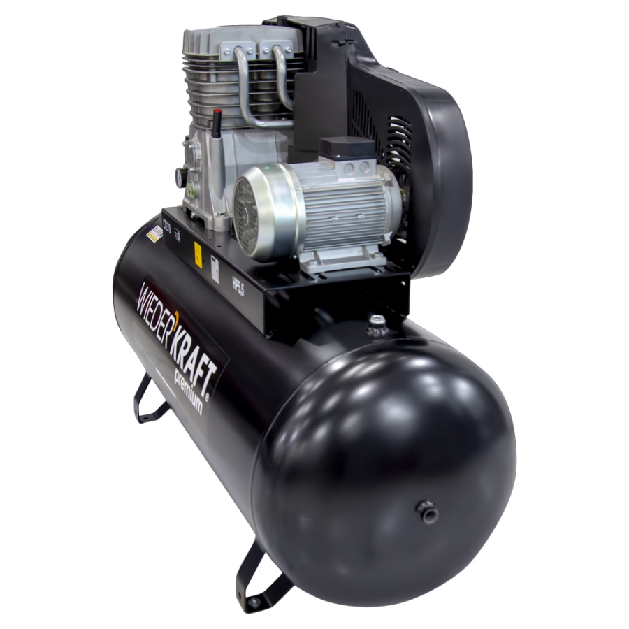 Стационарный поршневой компрессор с ременным приводом WiederKraft WDK-92765, который обеспечивает производительность 656 л/мин. Данная модель относится к классу профессионального оборудования и используется в случаях, когда требуется подача большого объема воздуха на длительное время, например в процессе покрасочных работ. Применяется на небольших предприятиях, австосервисах, а также в отдельных цехах крупных предприятий. Компрессор имеет большой объем и дополнительное давление в ресивере, что увеличивает запас воздуха. Ременная передача закрыта специальным кожухом, что исключает попадание в привод посторонних предметов и делает работу безопаснее. Цилиндры оснащены специальными большими ребрами, что увеличивает площадь теплоотдачи и способствует эффективному охлаждению. Для удобства эксплуатации все элементы управления компрессором размещены в одном месте. Устанавливается на нескользящие опорные ножки, что гарантирует его высокую устойчивость в процессе его эксплуатации. У ножек также имеются специальные отверстия для установки колес в случае необходимости. Основными преимуществами данного агрегата являются ременной привод, эффективное охлаждение, ресивер на 270 литров и двигатель мощностью 4 кВт, обеспечивающий высокую производительность — 656 л/мин.