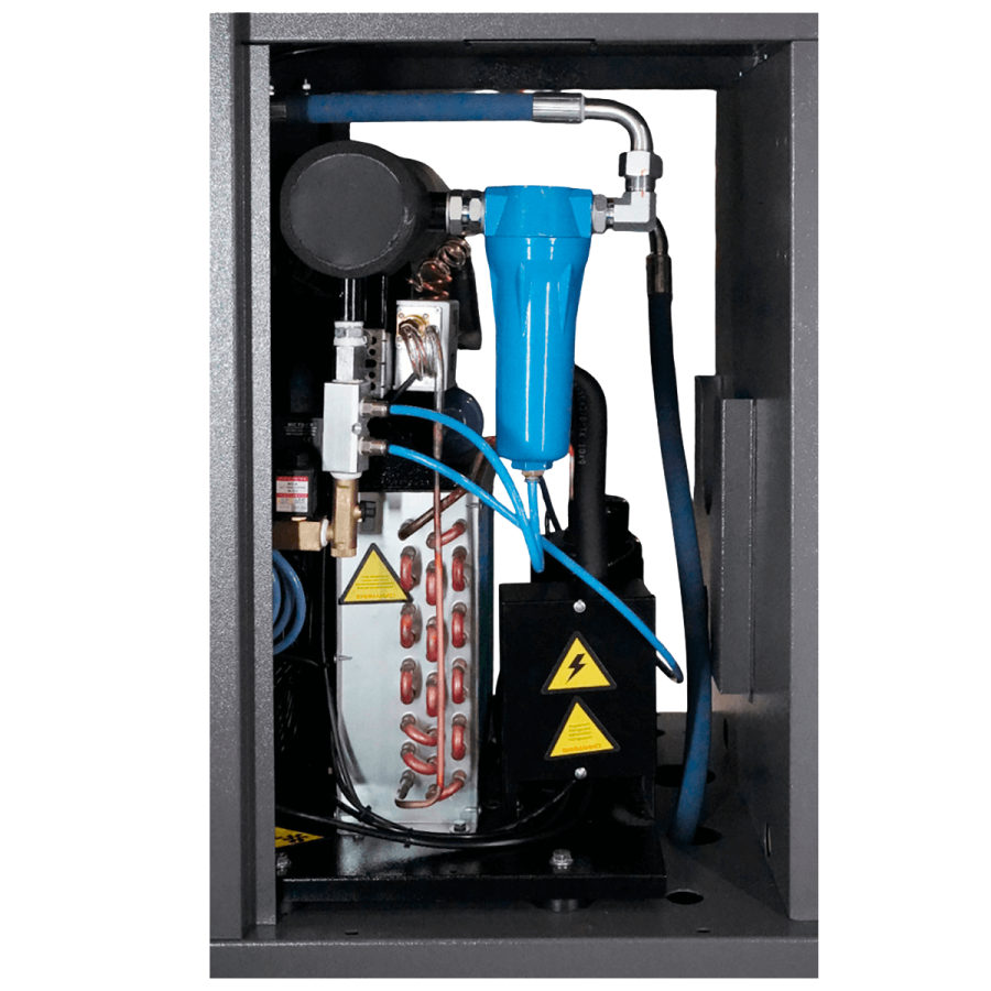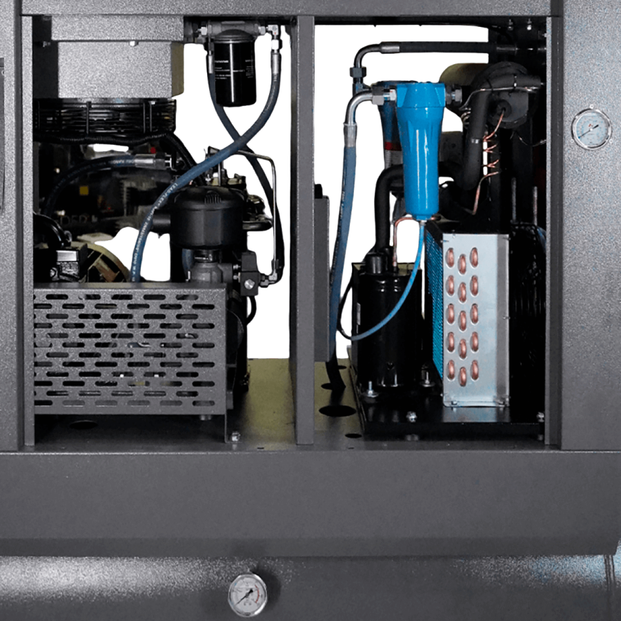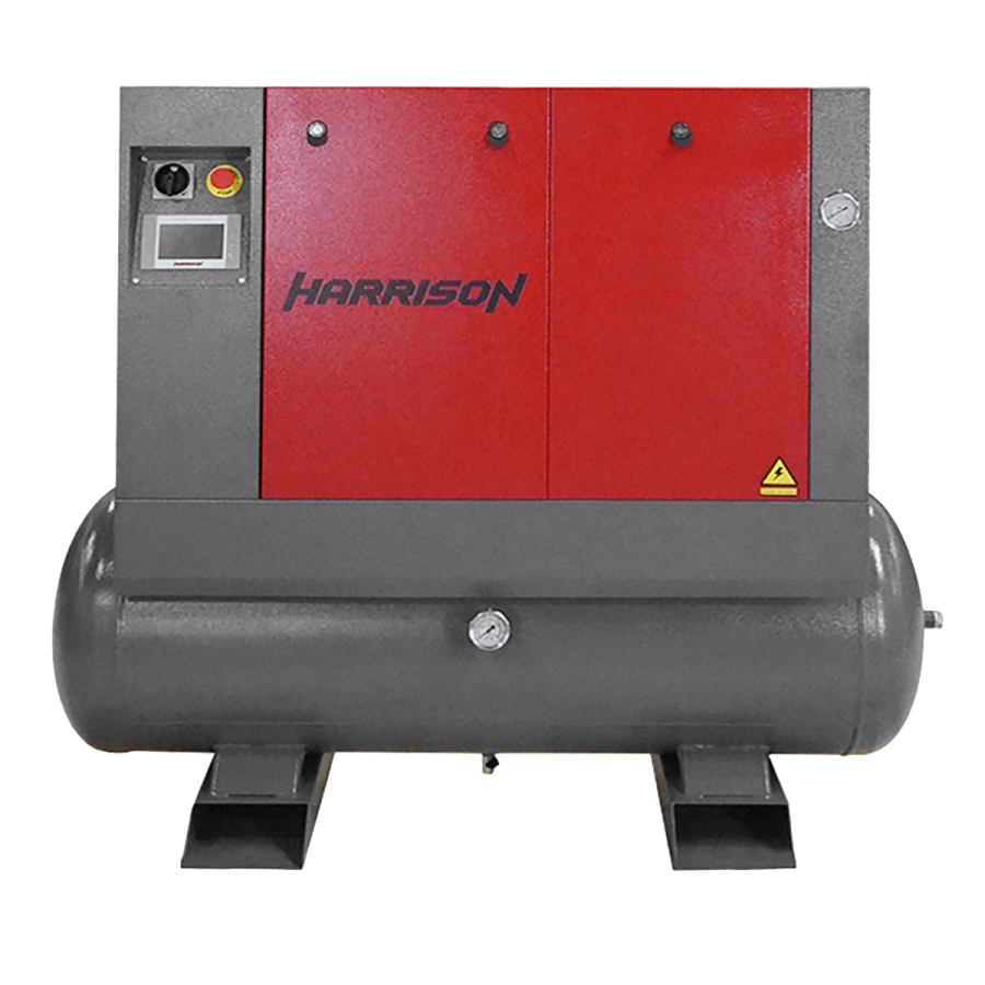 Моноблочная компрессорная установка Harrison «четыре в одном» (4 в 1) включает винтовой компрессор 7,5 кВт, ресивер горизонтального типа 300 литров, осушитель-рефрижератор и комплект магистральных фильтров. Предназначена для подготовки и очистки сжатого воздуха исполнительным устройствам. Особенностью данного модельного ряда является оптимальная (с точки зрения экономии рабочих площадей) компоновка: винтовой компрессор и осушитель размещаются непосредственно на ресивере в едином корпусе. Чаще всего модели моноблочного типа используются на предприятиях, где нет возможности установить компрессор, осушитель и ресивер по-отдельности.