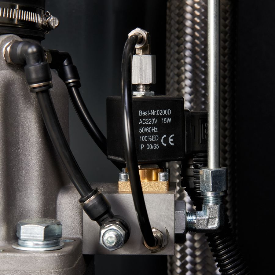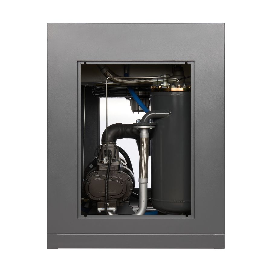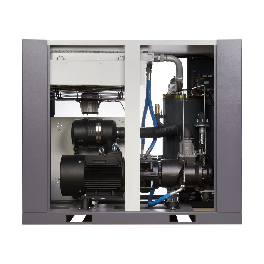 Компрессор оснащён электрическим двигателем, который обеспечивает его работу. Благодаря использованию винтового блока достигается высокая эффективность и надёжность работы оборудования. Компрессор имеет компактные размеры и низкий уровень шума, что позволяет устанавливать его в непосредственной близости от рабочих мест.
