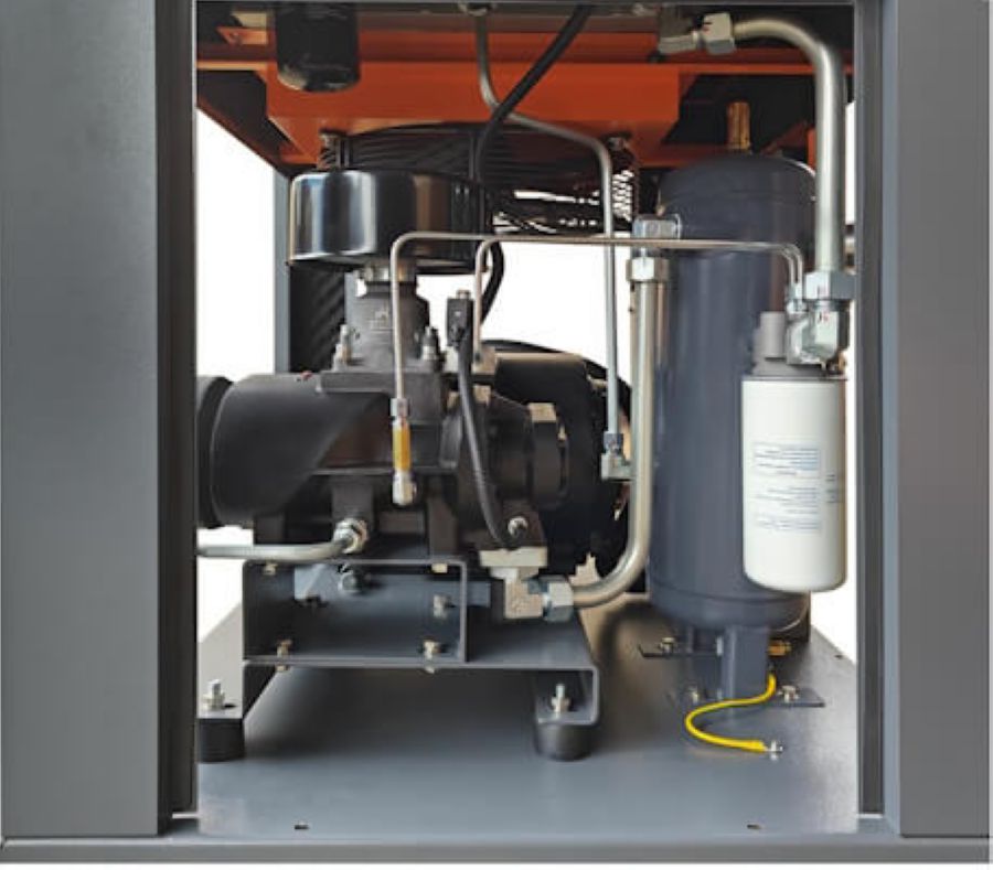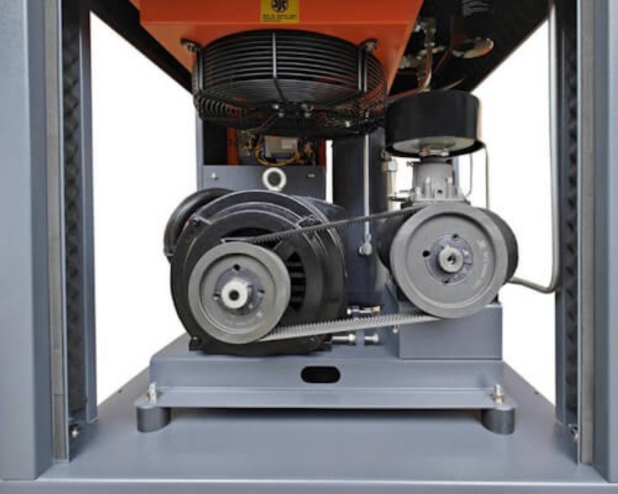 Эргономичный корпус с удобным расположением компонентов винтового компрессора с ременным приводом Metal Master серии MB увеличивает скорость технического обслуживания и снижает простои. Внутри компактного корпуса расположен винтовой блок, двигатель, системы охлаждения и смазки.