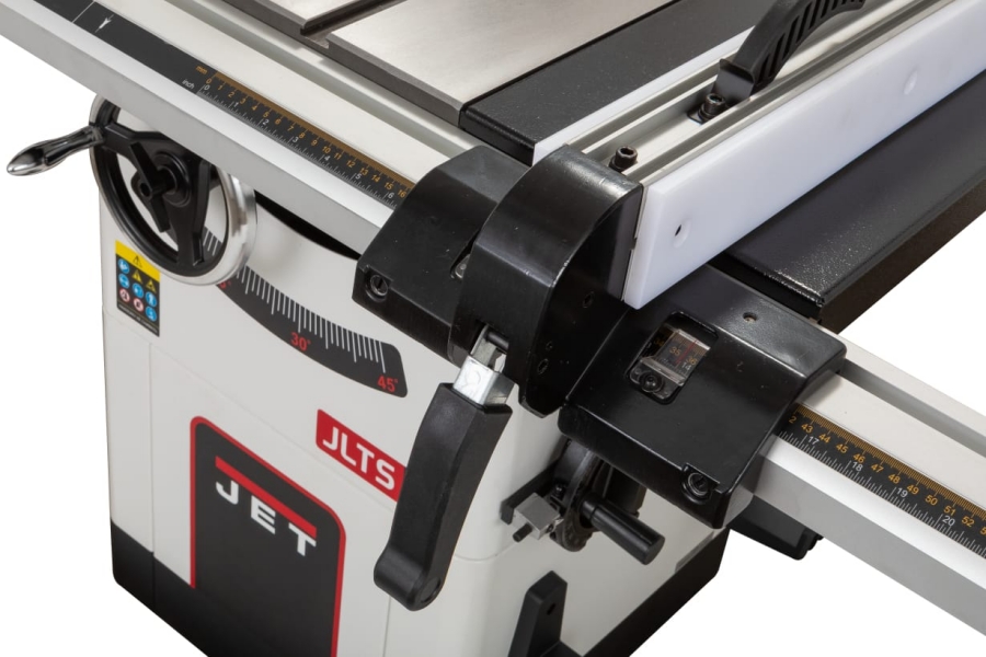 Устройство безопасного пиления в этом станке на высоком уровне. Здесь - подпружиненная, зубчатая, двухсторонняя защита от обратного удара и экранная защита пильного диска. Диск полностью закрывает пластиковый прозрачный экран. Он также двухсторонний. Он не мешает обзору зоны пиления. Свободно поднимается над заготовкой с обеих сторон от диска или только с одной, в зависимости от геометрии заготовок. Безопасная работа на станках – приоритет марки JET. Если по какой-то причине вам не нужны в работе эти устройства, например при пазовании. Для каждого их них есть свое место в органайзере на корпусе станка. Порядок в мастерской – залог качества изделий.