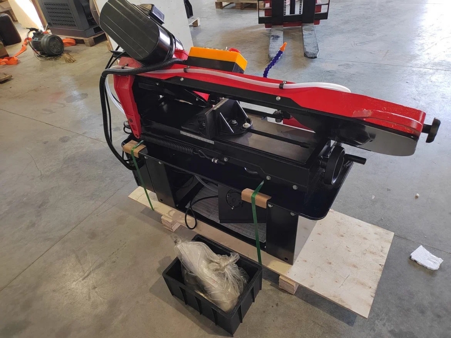 Специальные колеса позволяют с легкостью перемещать ленточную пилу по производственному участку