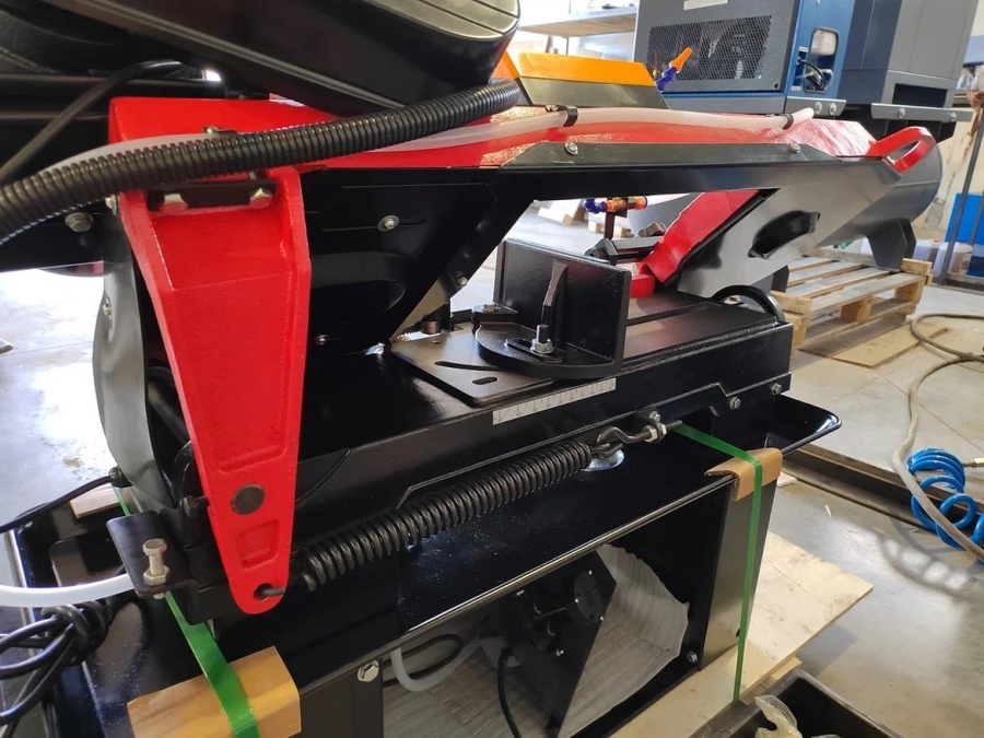 Привод движения ленточнопильного полотна позволяет реализовать четыре скорости резания 34, 41, 59, 98 м/мин, что обеспечивает возможность подбора требуемого режима обработки в зависимости от геометрии обрабатываемой заготовки и материала из которого она изготовлена