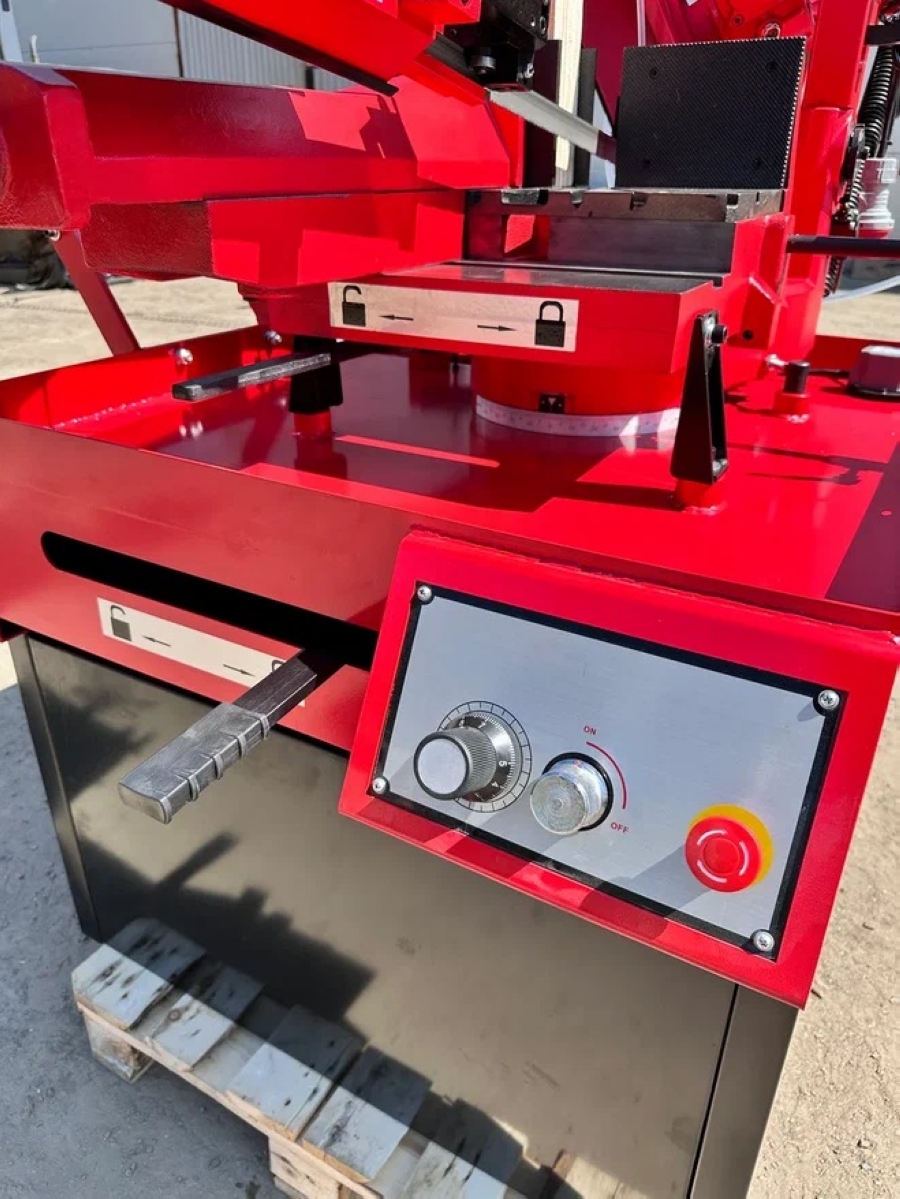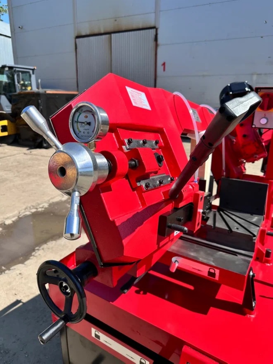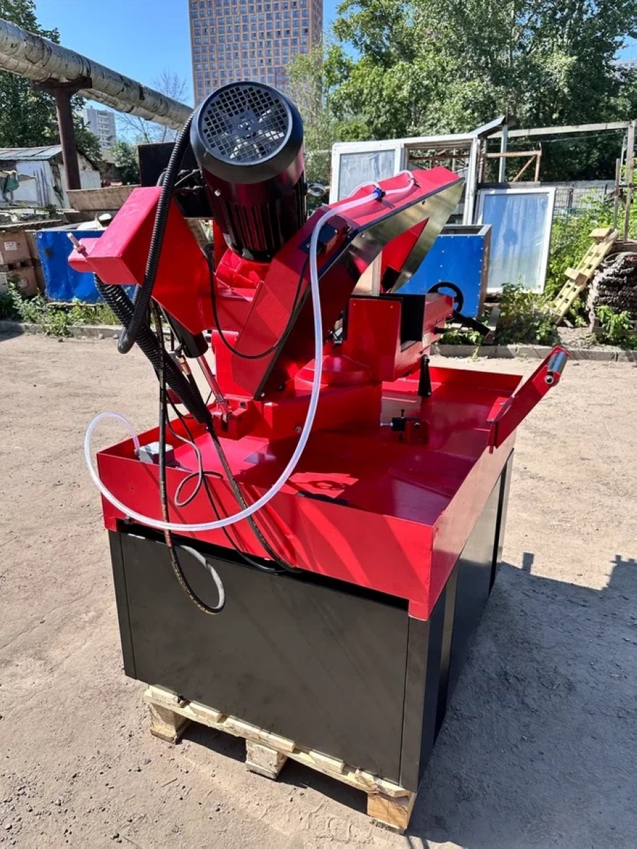 - Надёжный привод. Приводное движение пилы реализовано через мотор-редуктор с двухскоростным асинхронным двигателем мощностью 2,2/1,1 кВт, обеспечивающим скорости пиления 36 м/мин и 72 м/мин в зависимости от типа материала (металл, пластик, тонкостенные профили и др.).