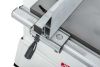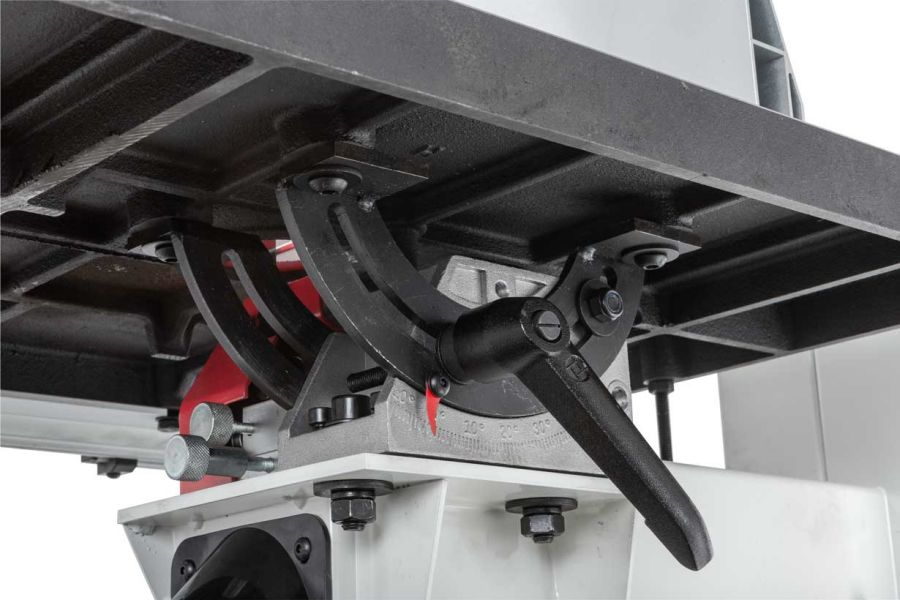 К подобным работам приспособлен и параллельный упор: направляющий профиль в вертикальном положении позволяет надежно фиксировать высокие заготовки при их роспуске на тонкие пластины, в низком – плоские детали, а также для пиления с наклоном. Упор имеет эксцентриковую фиксацию и перемещается вдоль алюминиевого профиля. Для упрощения настройки предусмотрена миллиметровая шкала и увеличительное стекло с риской на корпусе.