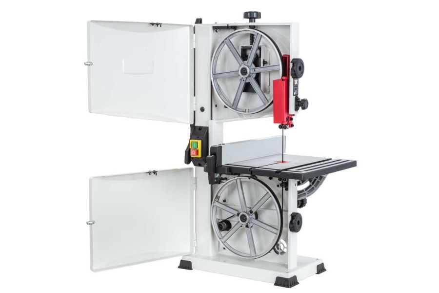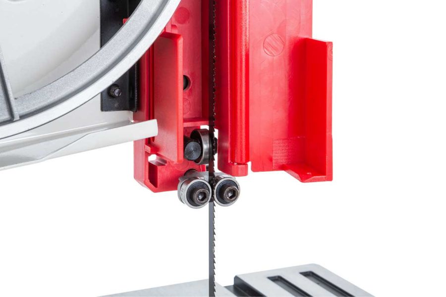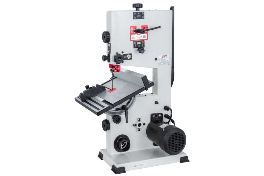 JWBS-9SL – настольный ленточнопильный станок для частного любительского применения. Позволяет распускать заготовки толщиной до 90 и шириной до 225 мм. Укомплектован трехроликовыми направляющими с шарикоподшипниками, обеспечивающими легкое движение ленты, минимальный износ и простоту регулировки. Ведущий шкив приводится во вращение через зубчато-ременную передачу, а не установлен непосредственно на валу двигателя, как часто делают для упрощения конструкции. Такая разнесенная схема дает более плавное без биений вращение и лучшую ремонтопригодность.