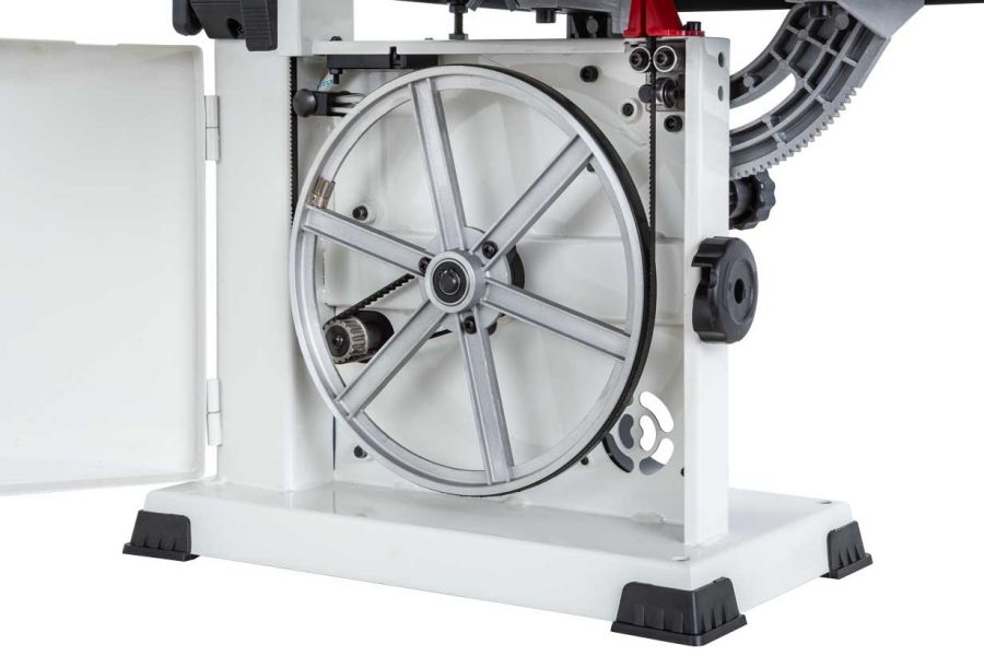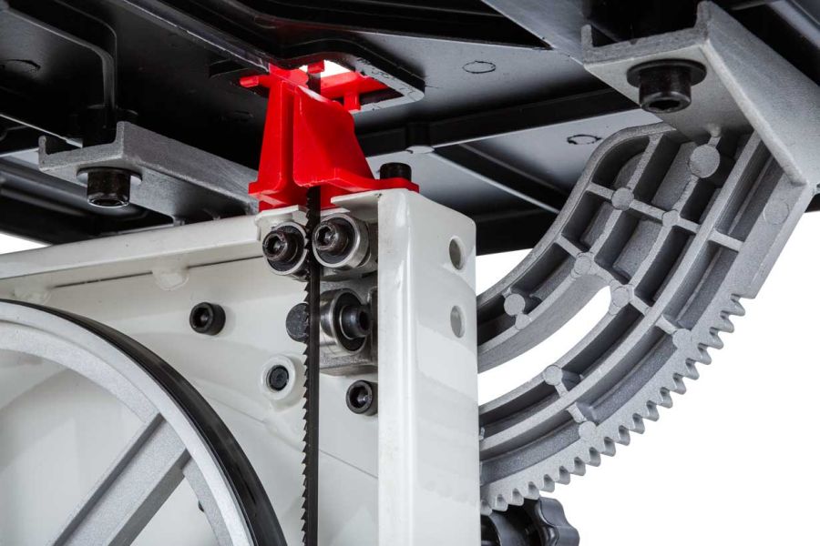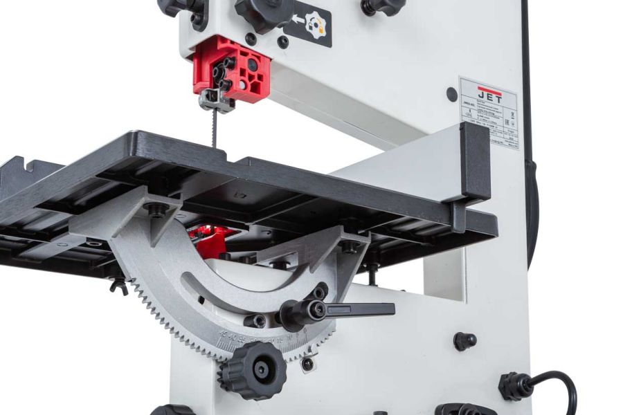 Важное достоинство JWBS-9SL – рычаг для быстрого натяжения и ослабления ленты, позволяющий оперативно переходить от состояния хранения к рабочему и обратно. Механизм имеет большой рабочий диапазон и нечувствителен даже к значительным неточностям длины полотна: инструкция допускает отклонения +/- 3 мм от штатных 1575 мм, но это значение указано «с запасом».