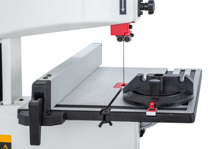 Рабочий стол, выполненный из алюминиевого литья, регулируется по наклону. В его поверхности предусмотрен П-образный паз для вспомогательных приспособлений, например, для скользящего углового упора (входит в комплект поставки). Вдоль края перемещается параллельный упор с удобным эксцентриковым зажимом.