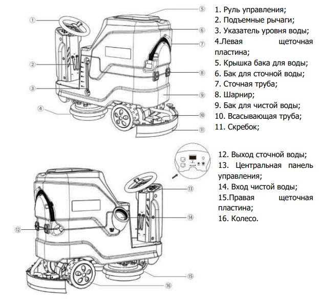 - Легкий доступ для обслуживания машины и опустошения баков.