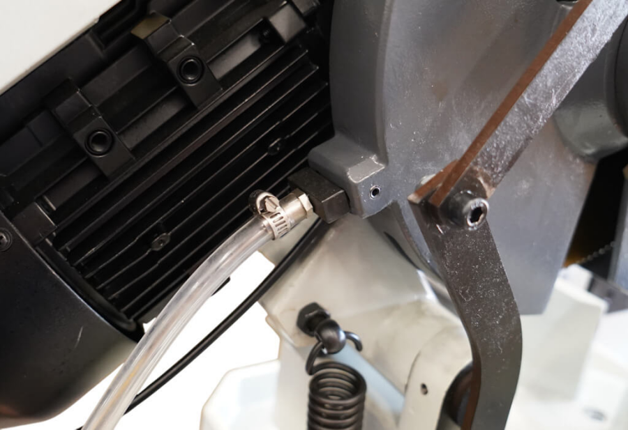 Станок Metal Master MCS-275 оснащенен встроенным баком для СОЖ. Подача СОЖ осуществляется непосредственно на пильный диск.