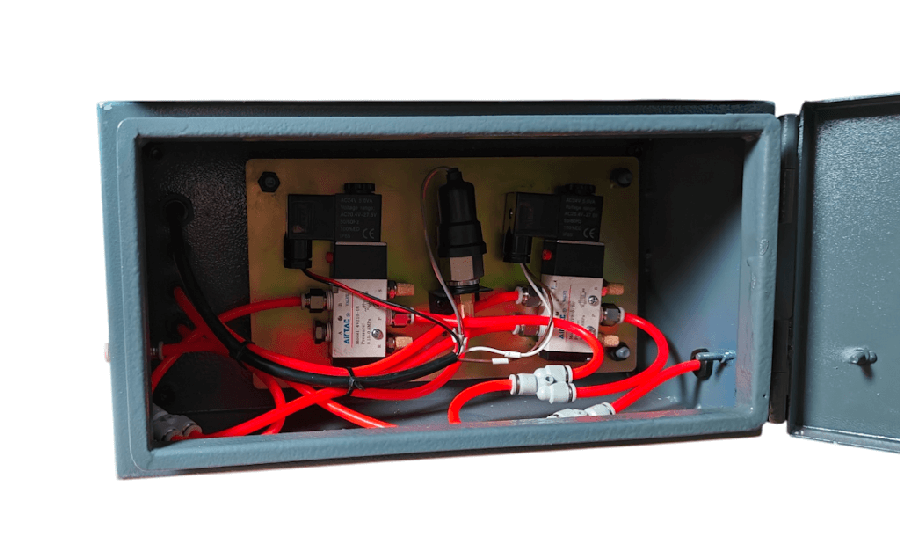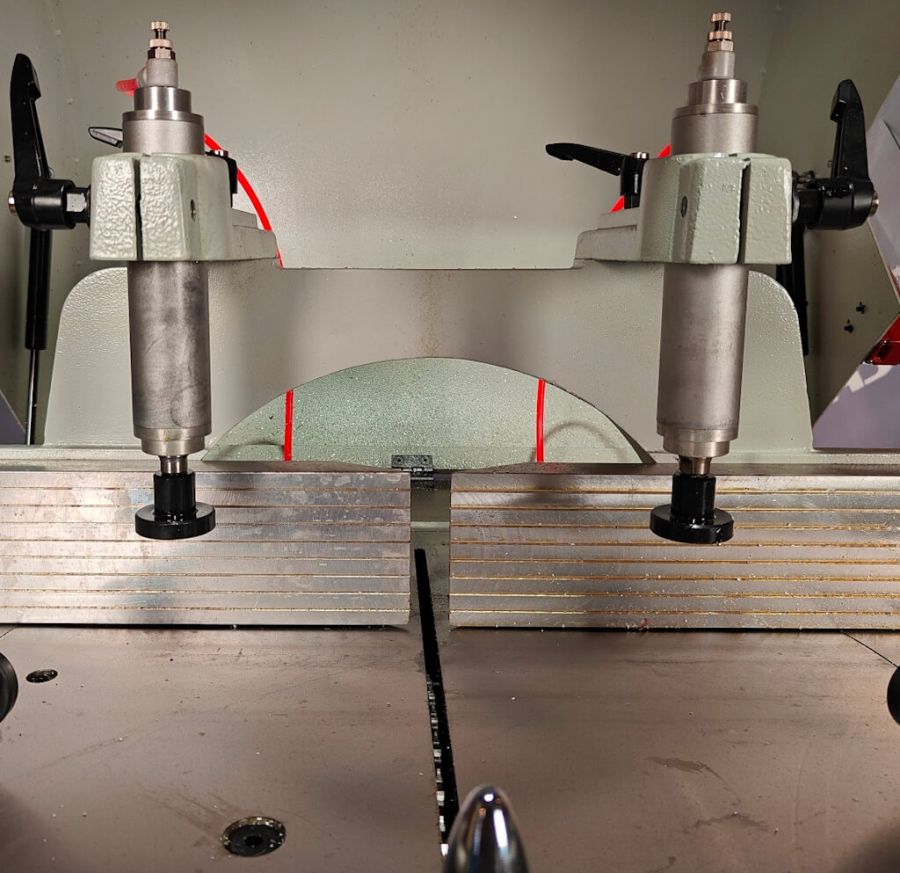 Горизонтальный и вертикальный прижим заготовки с помощью пневмоцилиндров;