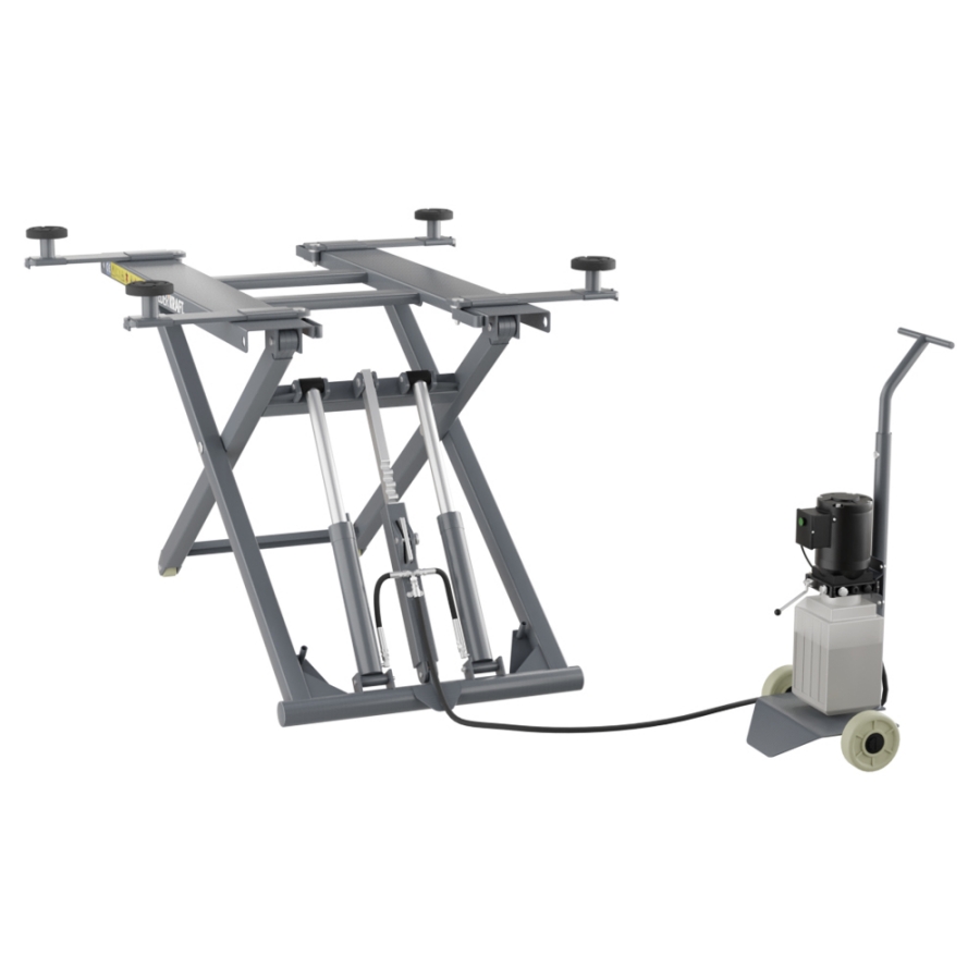 Ножничный мобильный подъемник WiederKraft WDK-503 с электрогидравлическим приводом. Благодаря облегченной конструкции и металлическим колесам подъемник можно перемещать по рабочей зоне и использовать для арматурных, шиномонтажных и других работ. Платформа с четырьмя поворотными лапами и резиновыми упорами позволяют поднимать как легковые автомобили, так и автомобили с несущей рамой кузова. Два гидроцилиндра с клапаном синхронизации рассчитаны на нагрузку до 2700 кг, а надежная система блокировки защищает подъемник от произвольного спуска.