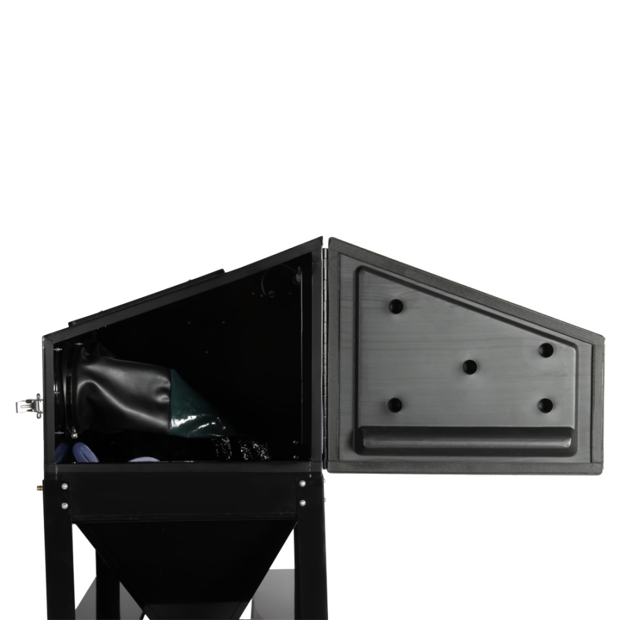 - Благодаря фильтру пескоструйную камеру можно использовать в закрытом помещении без оборудования дополнительной рабочей площадки;