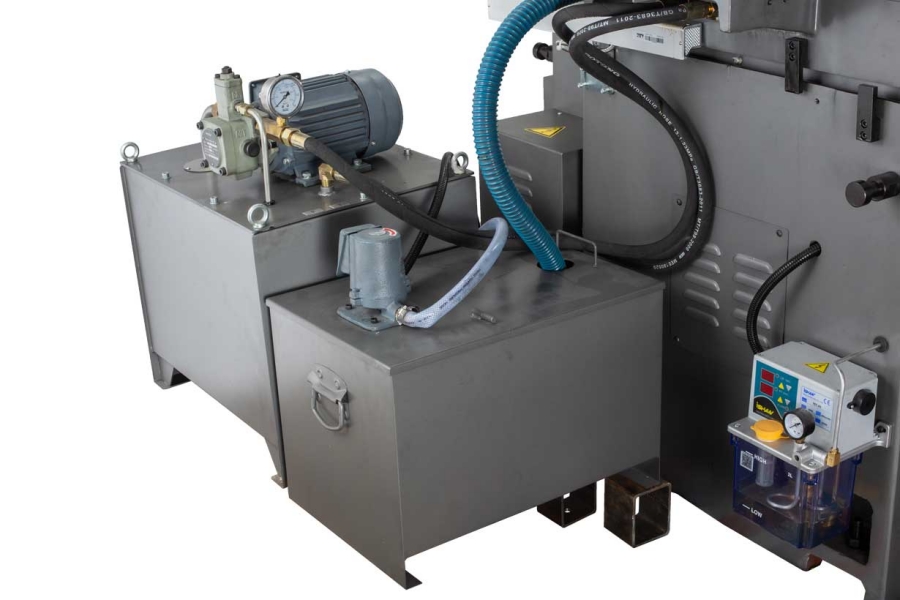 Продольное и поперечное перемещение стола выполняется в автоматическом режиме. Вертикальное перемещение шлифовального круга осуществляется вручную или в автоматическом режиме. За вращение шпинделя отвечает главный двигатель мощностью 2200 Вт. Мощность двигателя гидростанции 750Вт, объем гидравлической системы – 60 литров. Мощность насоса подачи СОЖ 40Вт. Объем бака СОЖ 50 л.